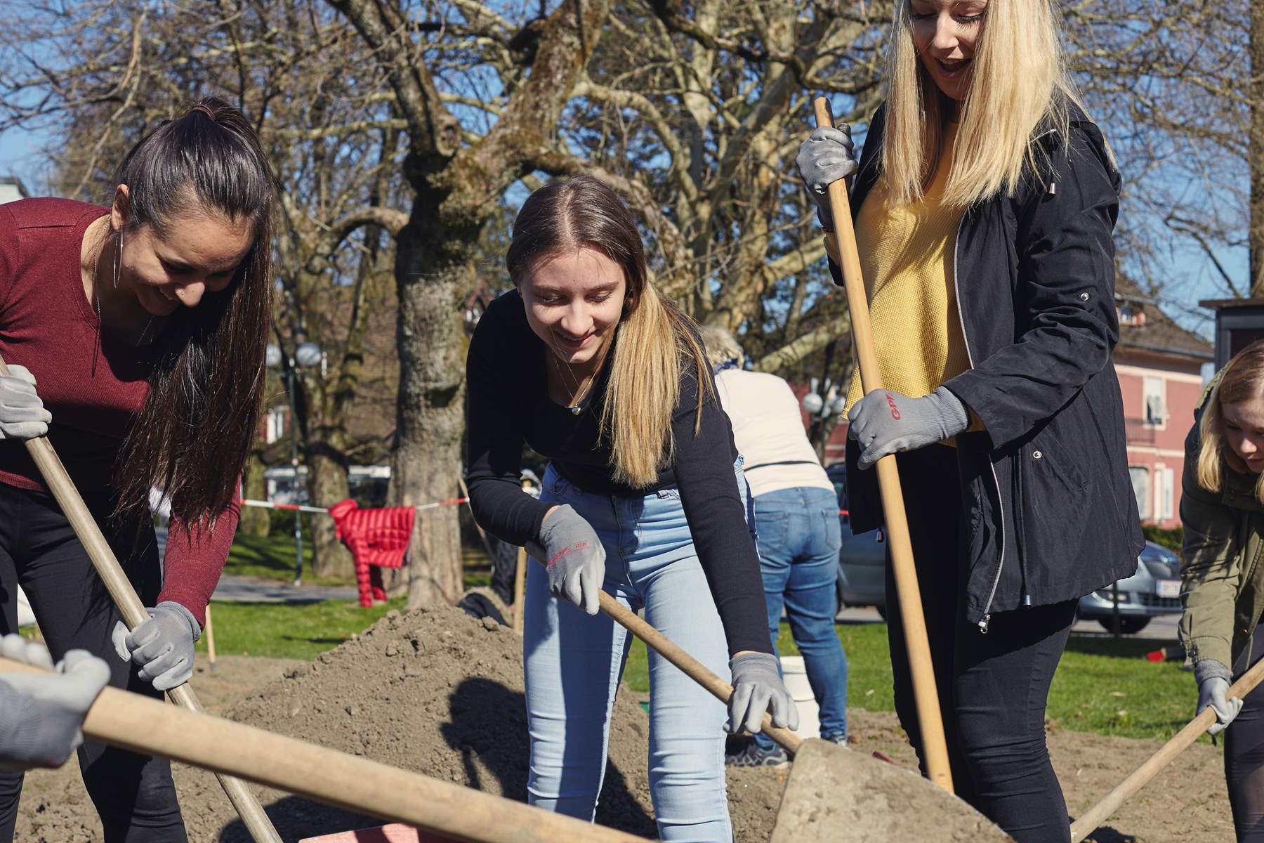 Die Drogistenklasse der Berufsschule Dornbirn packte am ersten Aktions-Wochenende tatkräftig mit an.