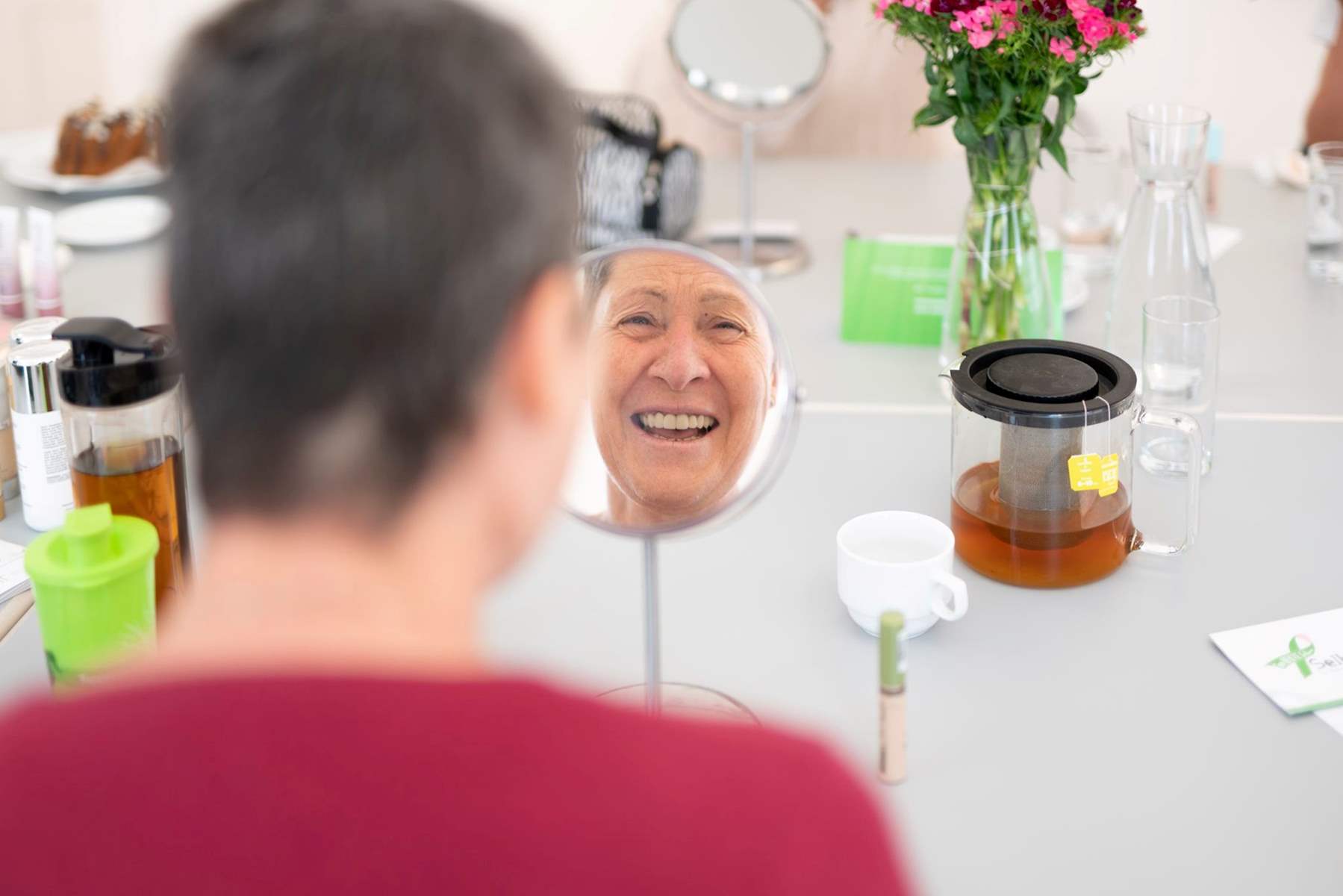 Das Projekt "feel again" begeistert nicht nur Teilnehmerinnen. Kürzlich statteten vier Filmteams den Kursen für Krebspatientinnen einen Besuch ab und gaben Einblick, wie ein solcher Vormittag mit Visagistin Catharina Flieger und Fotografin Birgit Machtinger aussieht.