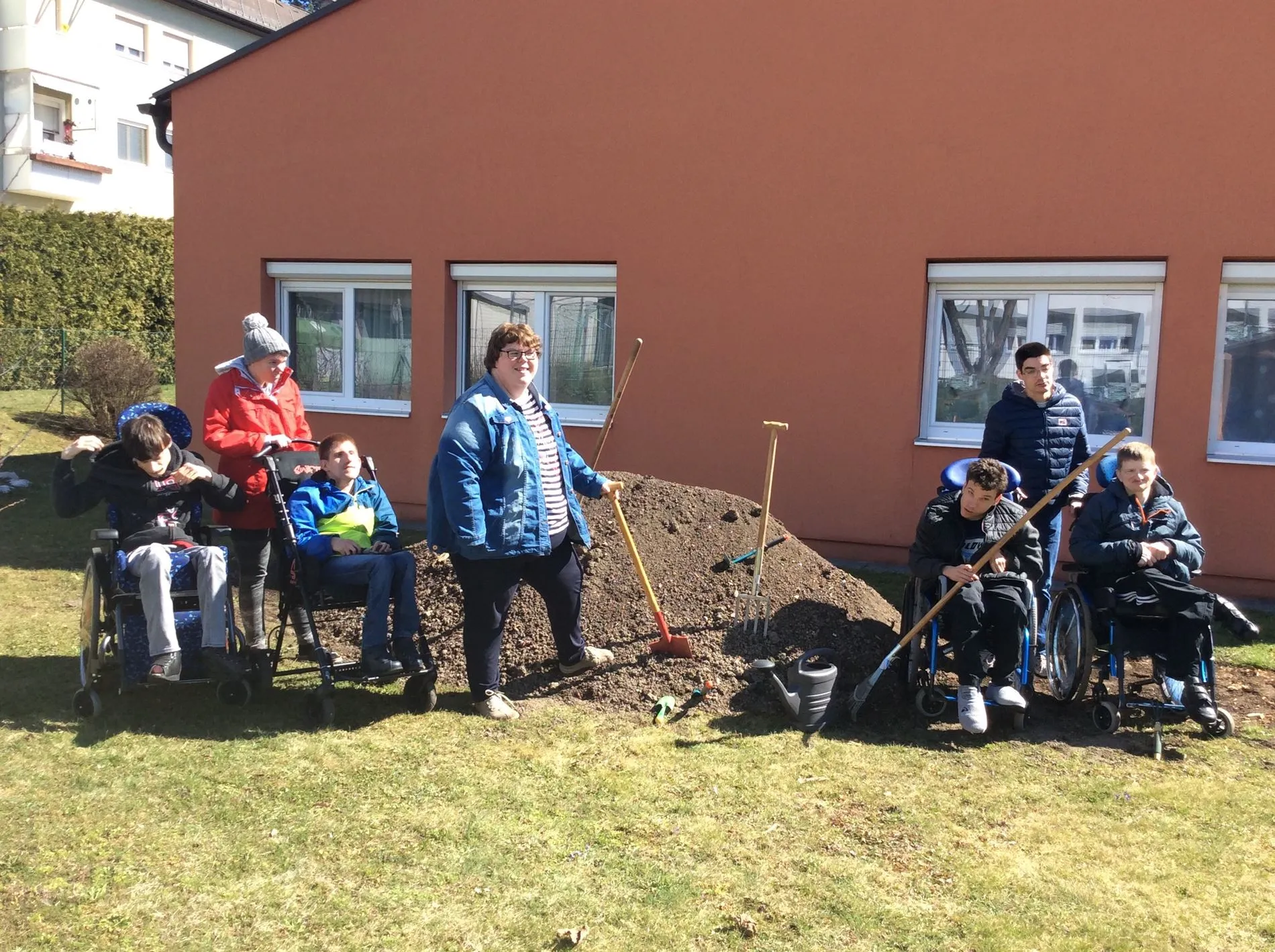 „Besonders wichtig ist uns, dass unsere Tagesklienten die Natur sowie die verschiedenen Jahreszeiten erleben können. Zudem möchten wir ihnen ein möglichst selbstbestimmtes Leben bieten“, berichtet Franz Warum. „Deswegen beauftragten wir die Tischlerei Eicher, die V-artigen Hochbeete zu produzieren. So können unsere Jugendlichen und Erwachsenen Menschen mit Behinderungen ohne fremde Hilfe direkt ans Beet gelangen, um Kräuter und Gemüse zu pflanzen und zu ernten.“