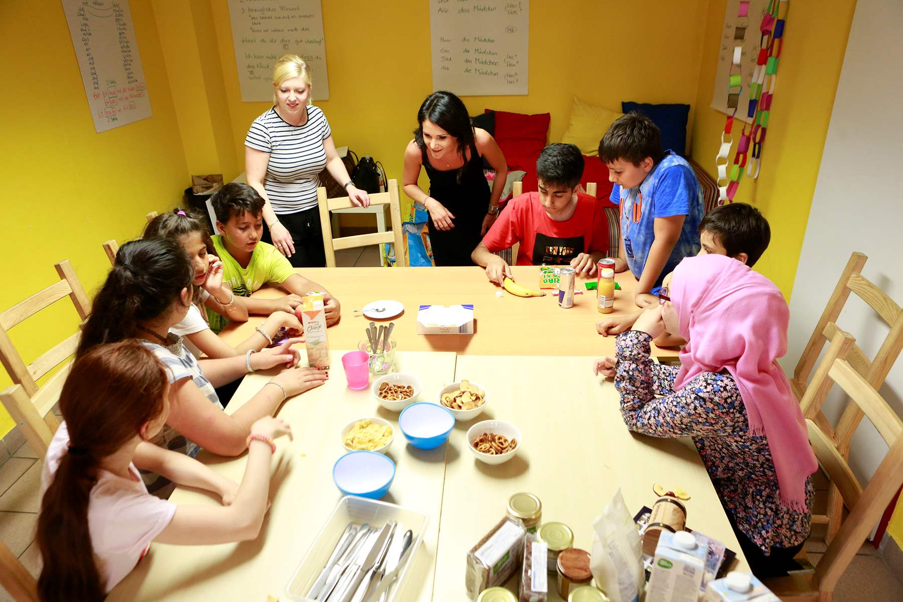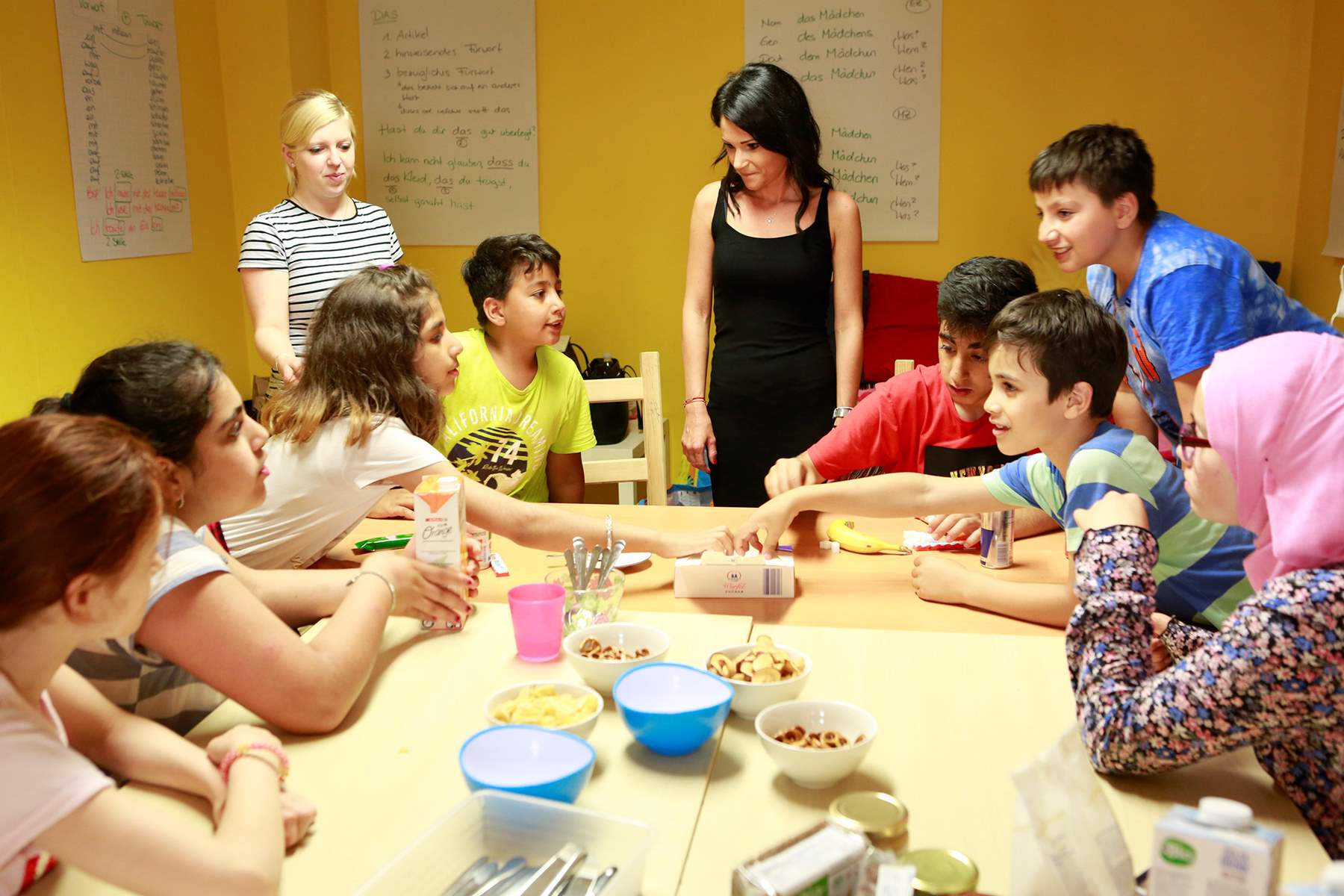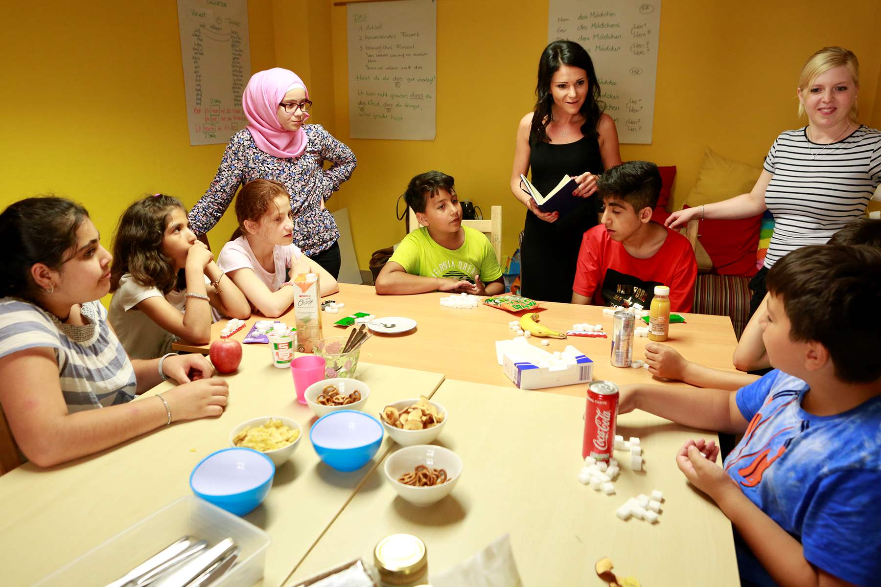Wir haben dmBio Lebensmittel eingepackt: Nudeln zum gemeinsamen Kochen und verschiedene vegetarische Saucen dazu, denn es muss nicht immer Fleisch geben. Von den Apfelchips, Kichererbsen und anderen gesunden Snacks waren die Kinder ganz begeistert, dass es auch ohne Schokolade schmeckt. Anschließend haben wir die Kinder raten lassen, wie viele Stück Würfelzucker in verschiedenen Limonaden und Süßigkeiten stecken, aber auch in einer Banane. So konnten wir den Unterschied zwischen zugesetztem und natürlichem Zucker erklären. Danach gab es ein ‚Speed-Dating‘: Die Kinder haben sich paarweise zusammengetan und über gesunde Ernährung miteinander gesprochen. Spannend war es, den Kindern aus Migrantenfamilien zuzuhören: Was kommt dort auf den Tisch?