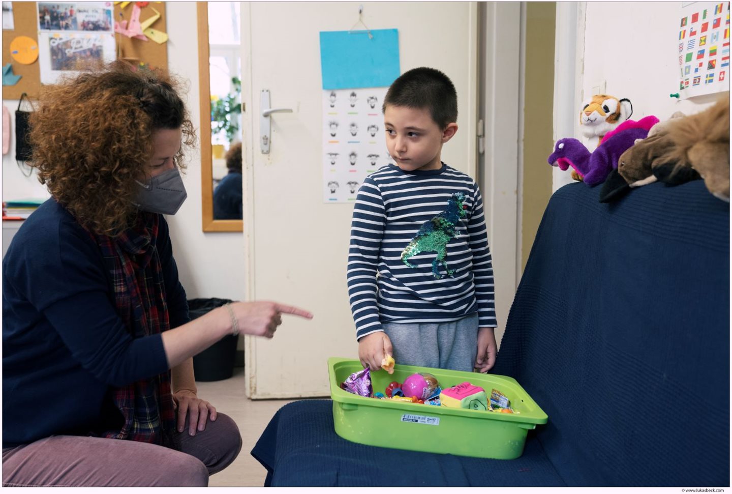 Insgesamt 33 Schulkinder leben mit ihren geflüchteten Familien im Integrationshaus Wien. Die Kinderpsychologin unternimmt gezielte Aktivitäten, damit die Kinder Vertrauen in ihre Umwelt erlangen können – ein schwieriger Prozess, der nur durch intensive und behutsame Begleitung gelingen kann.