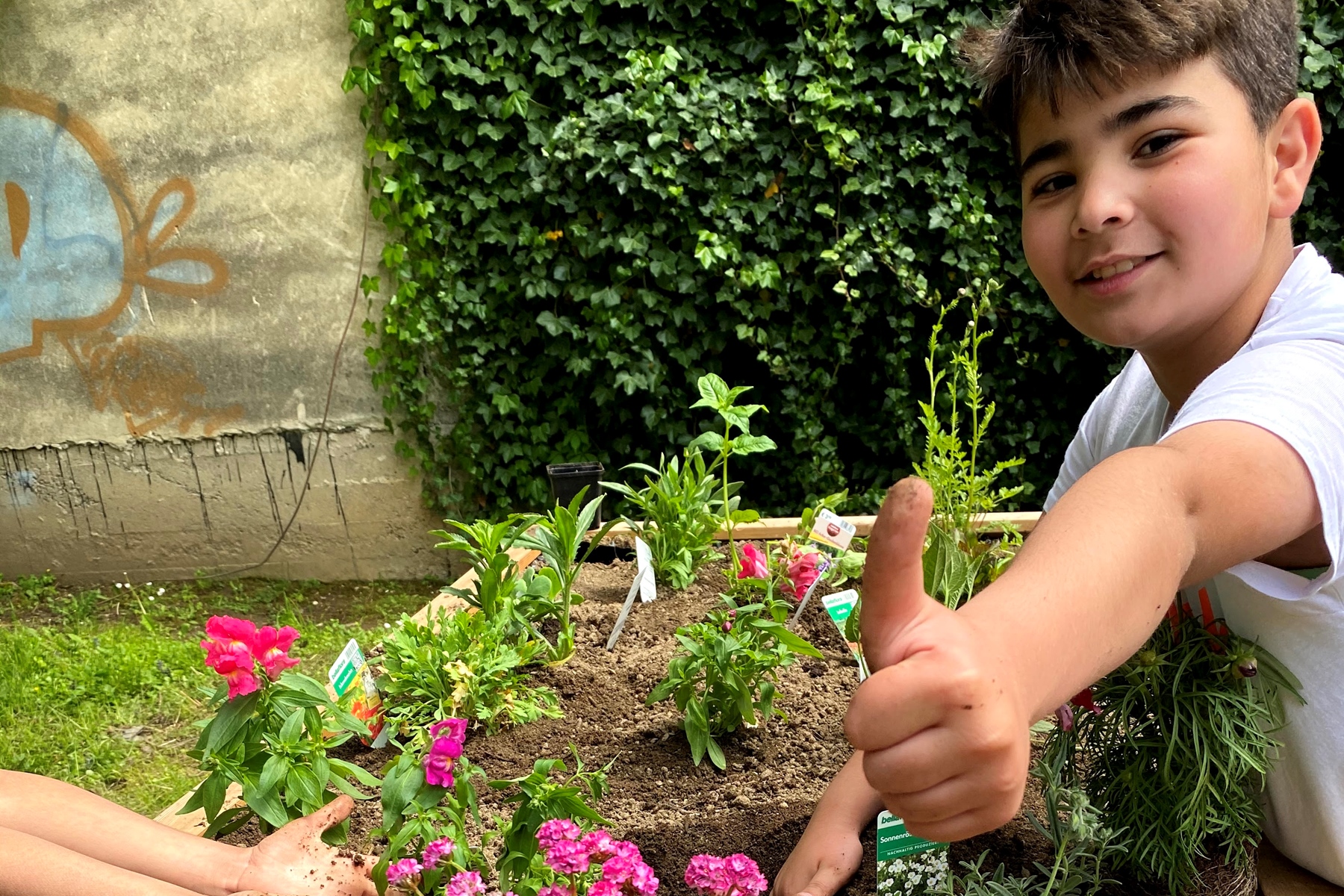 Die Kids gießen fleißig die Hochbeete und kümmern sich um Kräuter und Gemüsepflanzen. Nach den Hausübungen und dem Lernen für die letzten Tests und Schularbeiten, freuen sie sich schon, in den Garten gehen zu können.