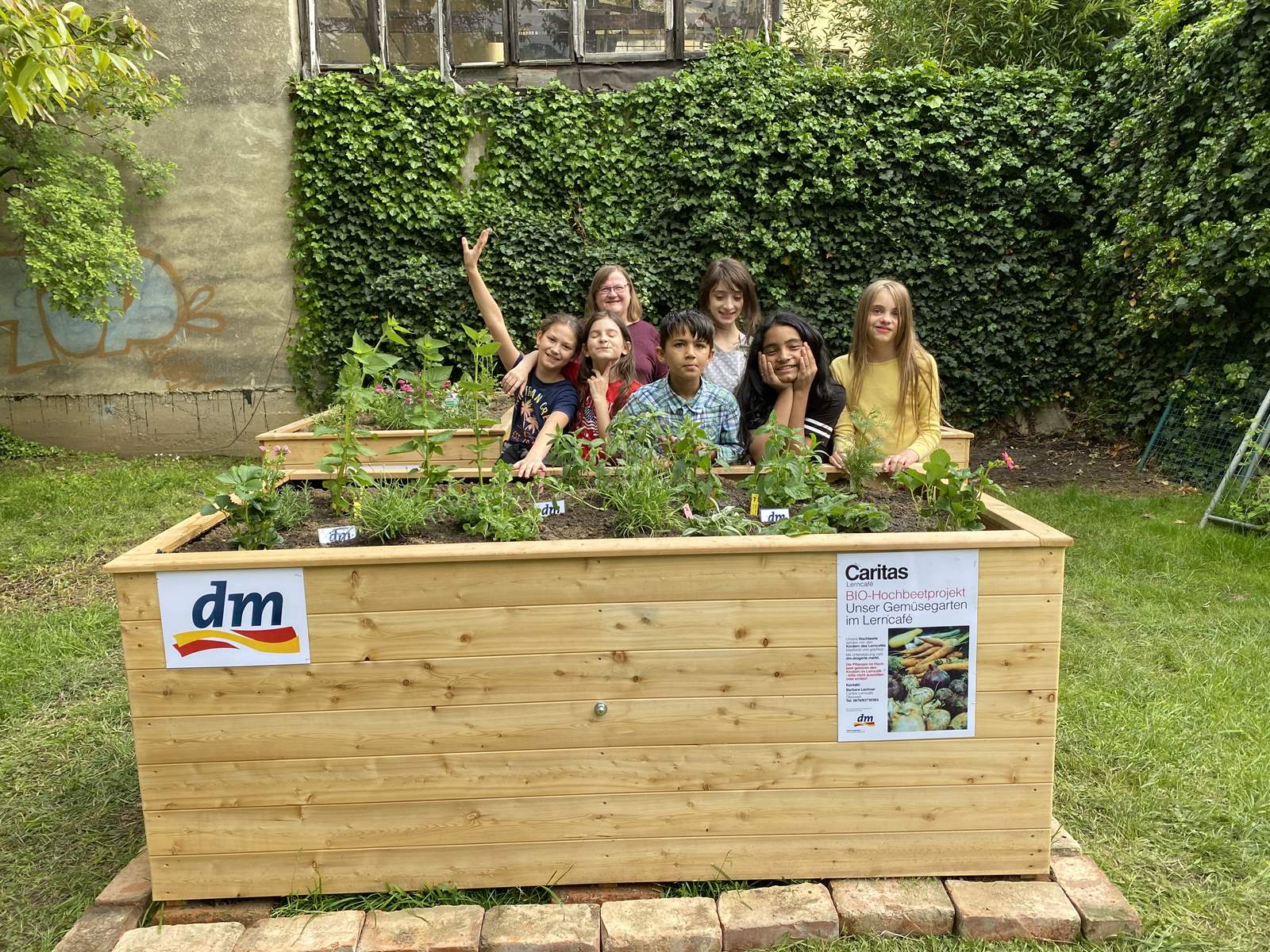 Wer seinen Kopf anstrengt, der muss auch gut essen: Daher wird im Caritas Lerncafé Oberwart ein eigener Biogarten mit Hochbeeten für die Selbstversorgung angelegt. So lernen die Kinder und Jugendlichen mit einem Team aus Freiwilligen nicht nur für die Schule, sondern ernten auch Gemüse für eine gesunde Jause.