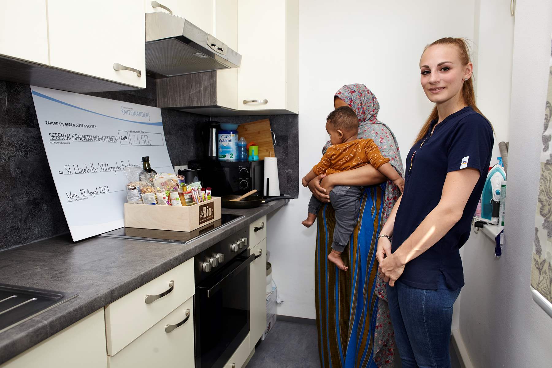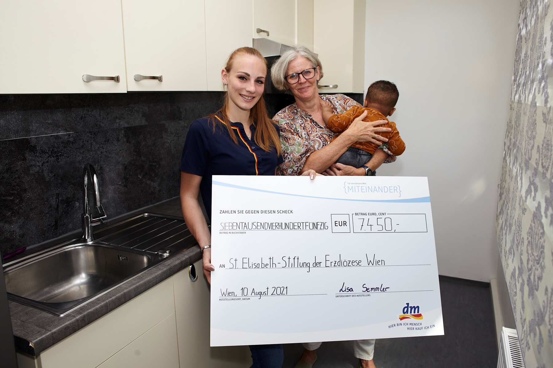 Im 10. Wiener Gemeindebezirk Favoriten wurde in den letzten Tagen eine Sozialwohnung der St.-Elisabeth-Stiftung der Erzdiözese Wien fertiggestellt – dank der finanziellen Unterstützung durch dm drogerie markt mitsamt einer neuen und vollständig ausgestatteten Küche. Zur Übergabe waren Katarzyna Kuban, Marketingverantwortliche der St.-Elisabeth-Stiftung, sowie dm Filialleiterin Lisa Semmler vor Ort. „Mit diesem Kücheneinbau ist es uns wieder einmal gelungen, einer Mutter in Not zu helfen und so den Grundstein für eine positive und eigenständige Zukunft zu legen“, so Kuban. Als Einzugsgeschenk überreichte Lisa Semmler einen Präsentkorb mit Produkten aus dem dm Sortiment: „Für mich ist es besonders schön, hier im direkten Umfeld unserer Filiale in der Laaer-Berg-Straße helfen zu können. Gerade in den ersten Kindheitsjahren ist eine gesunde Ernährung wichtig, weshalb wir nicht nur finanziell, sondern auch mit Produkten aus unserem Sortiment unterstützen möchten.“