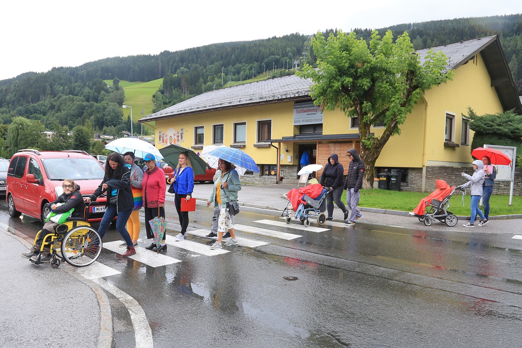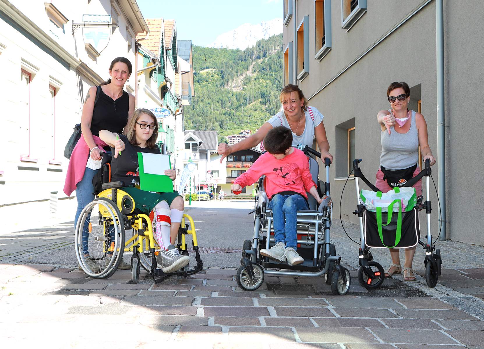 Beim Workshop wurden Rampen befahren, Schwellen mehr oder weniger leicht überwunden sowie Barrieren und Erfahrungen dokumentiert. Gemeinsam wurde Schladming auf unterschiedlichsten Routen erlebt. Man wechselte die Perspektive und setzte sich mit Fragen wie „Wie fühlt sich eine Strecke aus dem Blickwinkel eines Rollstuhlfahrers an, wie aus der Sicht einer Assistenzperson, die den Rollstuhl schiebt?“ auseinander.