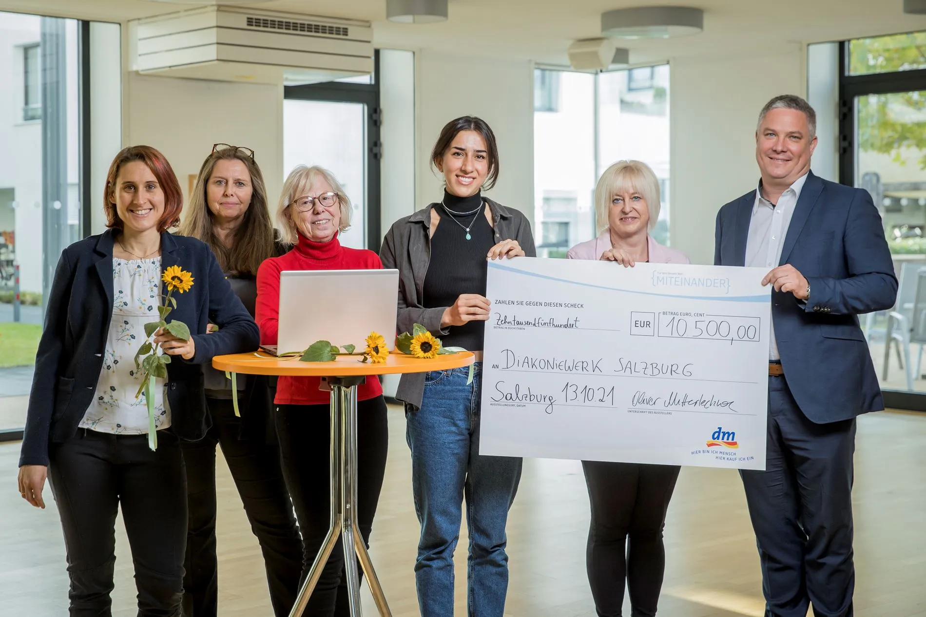 45 Jahre, 45 x Gutes tun – so lautete das Motto der Jubiläumsinitiative von dm drogerie markt. Ziel war es, Barrieren abzubauen und Menschen zusammenzubringen. Dafür hat das Unternehmen dieses Jahr 45 soziale Projekte in ganz Österreich bei der Umsetzung begleitet – darunter auch das Diakoniewerk Salzburg, das im Oktober 2021 einen Scheck in der Höhe von 10.500 Euro für das Projekt „Handy, Laptop & Co. – soziale Teilhabe durch digitale Verbundenheit“ erhalten hat.
