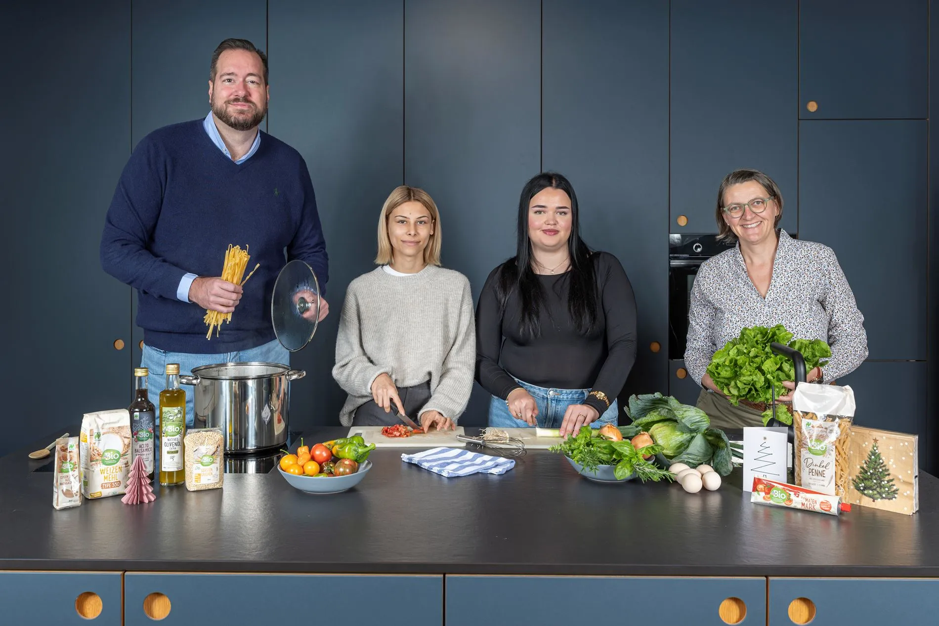 Das Menü, die Abstimmung mit den Einrichtungen, die Bio-Produkte sowie Dekoration stellt dm seit jeher zur Verfügung und kauft auch frische Lebensmittel wie Fleisch und Gemüse von Bio-Bäuerinnen und Bio-Bauern des Verbands BIO AUSTRIA zu. Um Wege zu sparen, werden die benötigten Produkte von umliegenden dm Filialen sowie regionalen Bio-Höfen zu den Küchen im ganzen Land geliefert. Die jeweiligen Einrichtungen kochen dann am Wunschdatum im Dezember für die Klientinnen und Klienten.Wie schon in den Jahren zuvor werden viele der Festessen von dm Mitarbeitenden begleitet. Diese nutzen ihren „mehr vom leben tag“ – ein zusätzlicher freier Tag für soziales Engagement – und helfen am Tag der Veranstaltung zum Beispiel beim Dekorieren und Kochen mit oder unterstützen die Ausgabe der Menüs.