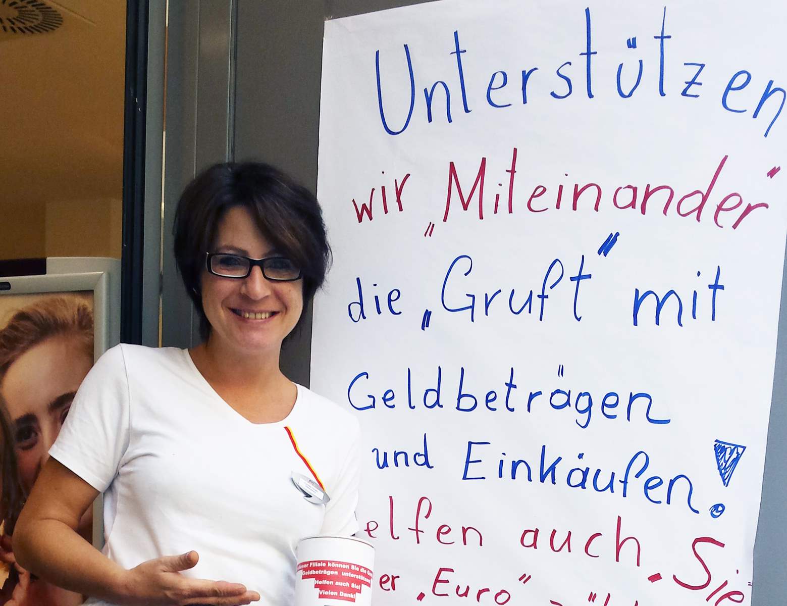 Projektkoordinatorin Sabine Kohl sammelt Gaben für die Gruft Wien.