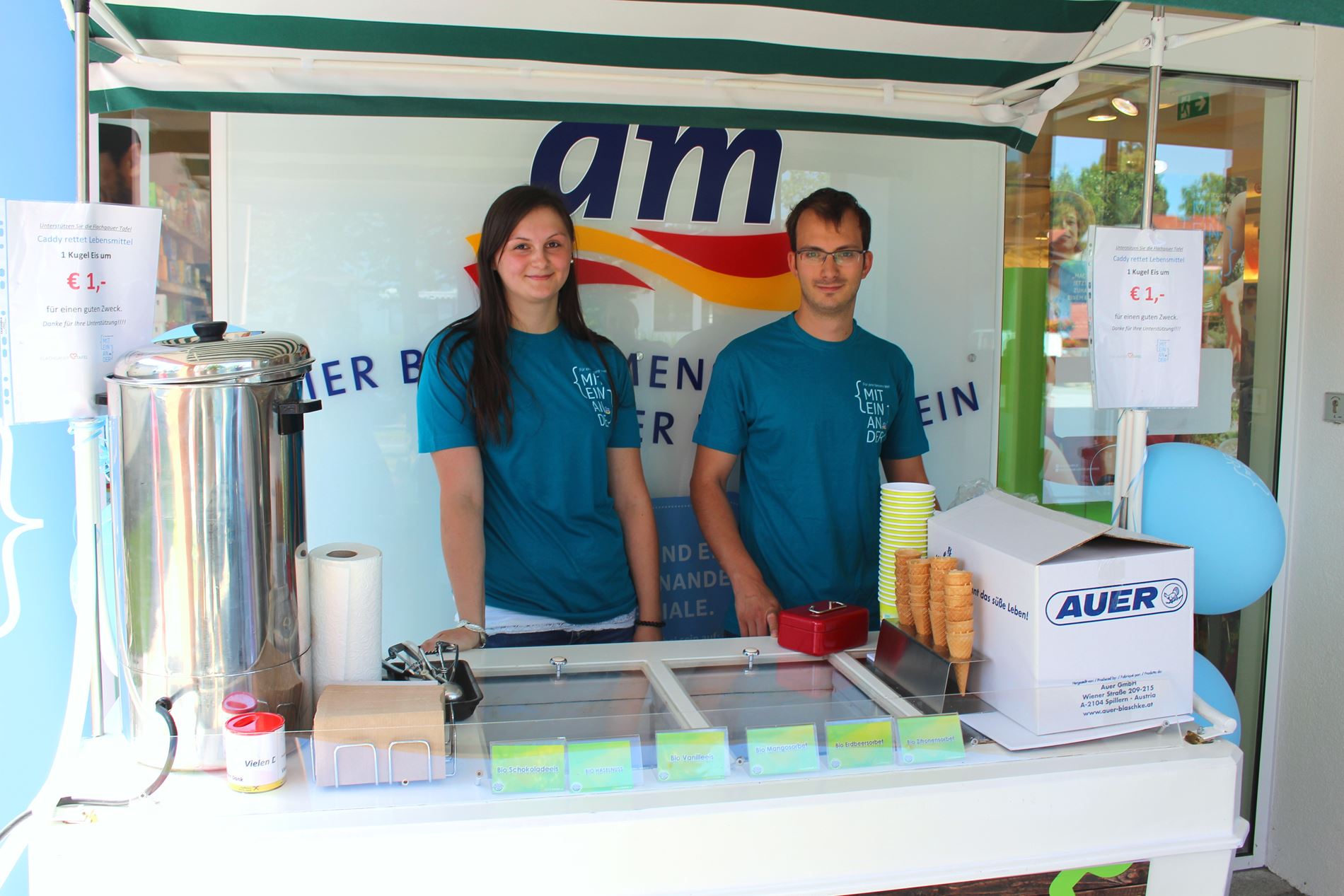 Auch am zweiten Tag bestand das Eis-Verkaufsteam aus einer Filialmitarbeiterin und einem Mitarbeiter aus der Zentrale. Agnes Sinnhuber und Fabian Amstorfer hatten großen Spaß dabei, Kinderaugen zum Leuchten zu bringen und mit den Erwachsenen über die Ziele der Flachgauer Tafel zu sprechen. Der Andrang war wie am ersten Tag riesig und hat die Erwartungen übertroffen. Am Ende konnten alle Beteiligten auf ein rundum gelungenes Genuss-Wochenende zurückblicken mit dem Wissen, Gutes getan und {miteinander} etwas bewirkt zu haben.