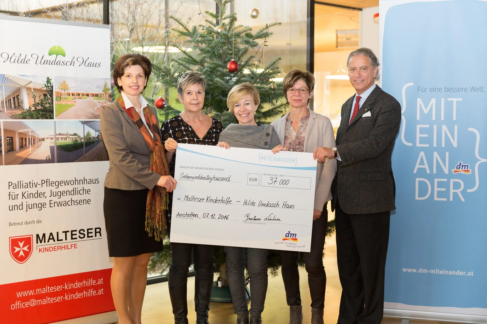 dm übergibt Scheck an das Hilde-Umdasch-Haus