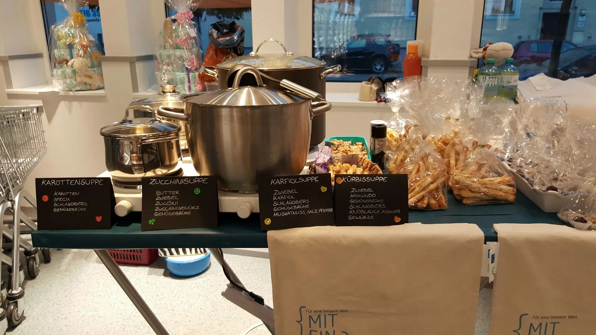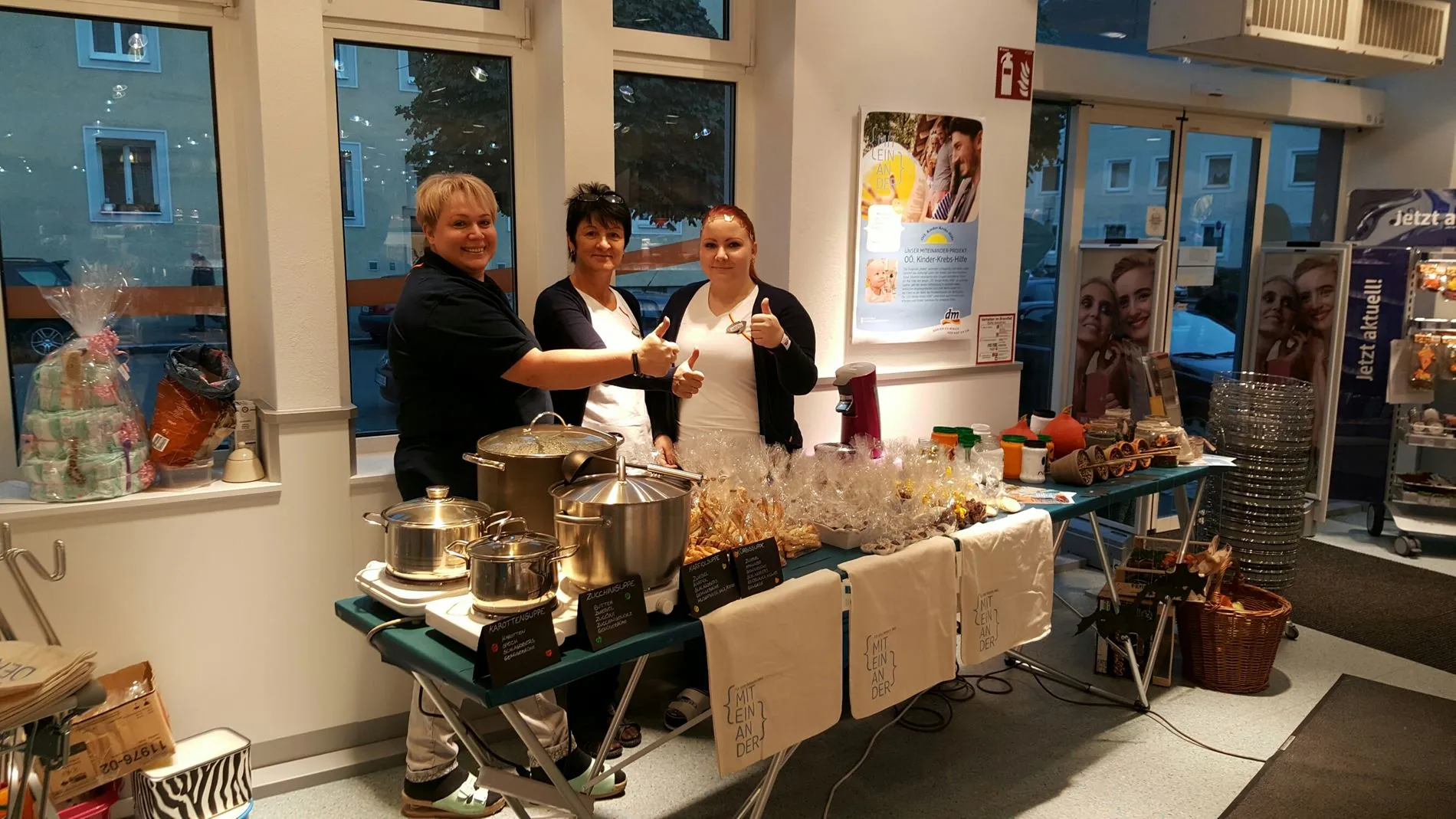 „Suppe löffeln für den guten Zweck“ lautete die Devise. Eine Suppe kann einem das Herz erwärmen, wenn es draußen trüb und unfreundlich ist – das dachten sich auch die Kolleginnen aus der Filiale Holzstraße in Linz und luden am 13. Oktober im Rahmen der {miteinander}-Initiative zum herbstlichen Suppentag bei dm ein.