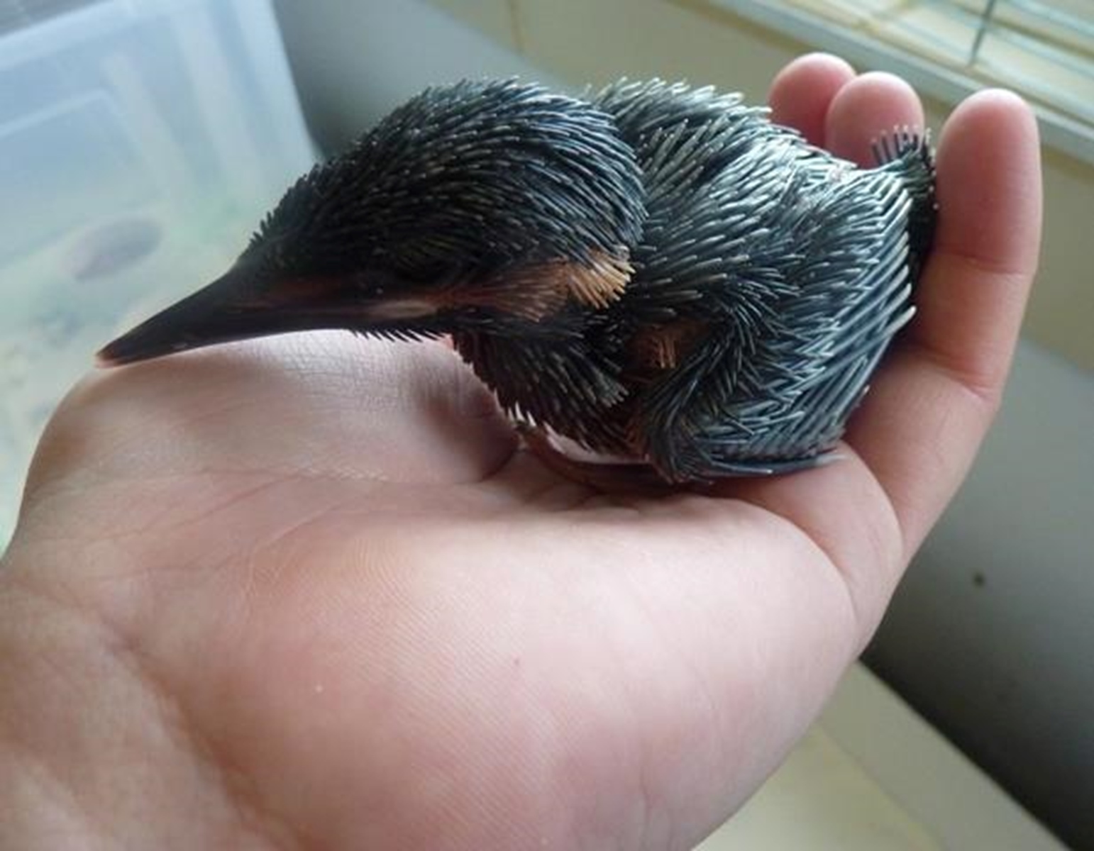 Kleiner Patient: Ein Eisvogel in der Hand eines Helfers.